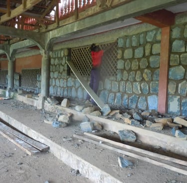 This partnership funded the 2020 Cultural Emergency Response Project at the Mankon Palace and Museum Cultural Heritage Site. Key activities included reinforcing the museum’s vulnerable front wall with a stone barrier, constructing a secure metal shelving system for artefact preservation, and digitising the museum’s collections for online access via Google Cloud. Additional outcomes involved training stakeholders and community members on heritage preservation and emergency response, as well as installing fire extinguishers and conducting safety training within the palace and museum.