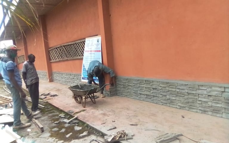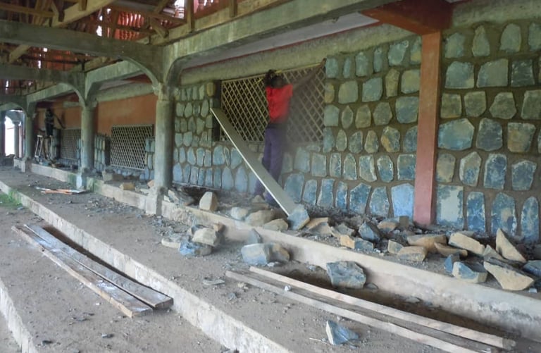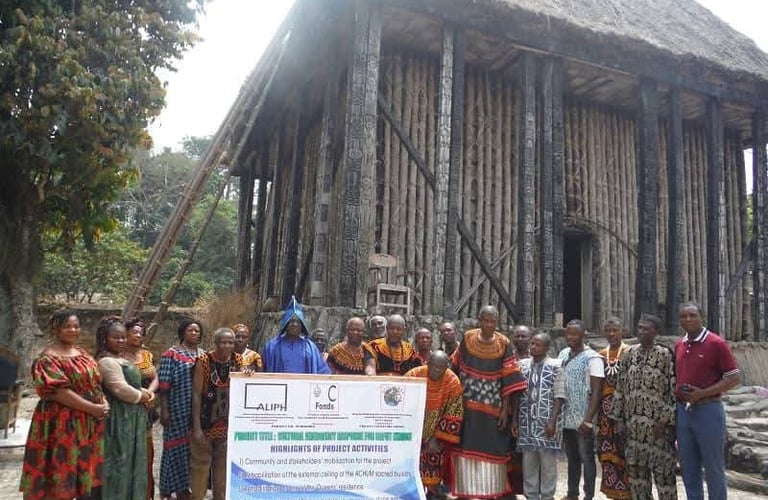 This 2021 project targeted the Bafut Palace Cultural Heritage Site, which is on Cameroon’s tentative list of UNESCO World Heritage Sites. Major interventions included mobilising the community, extending the museum’s security stone fence, rehabilitating one of the queens’ residences, and restoring the exterior ceiling of the sacred ACHUM traditional building.